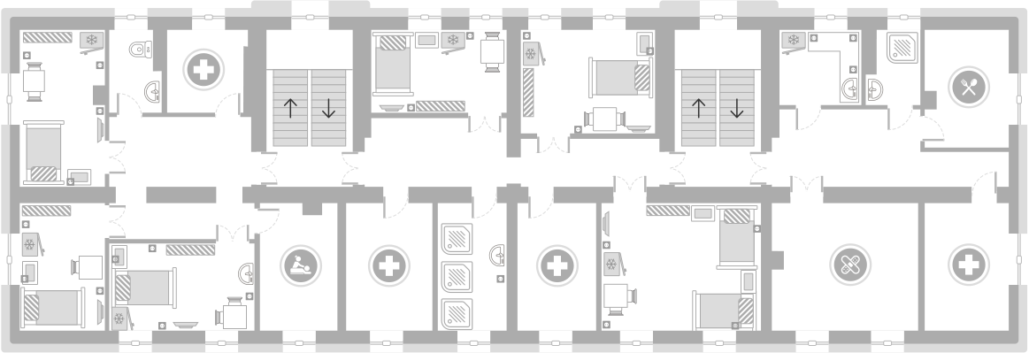 Палаты оборудованы всем необходимым для удобства пациентов! Для Вас – удобные функциональные кровати с противопролежневыми матрасами, которые подходят для людей с любыми проблемами со здоровьем, система экстренного вызова медицинского персонала, наличие приборов многочасового мониторинга артериального давления и сердечной деятельности. В каждой палате есть кондиционер, холодильник, телевизор с системой спутниковых каналов. В составе отделения имеются палаты одно- и двухместного пребывания, а также палата класса VIP.
