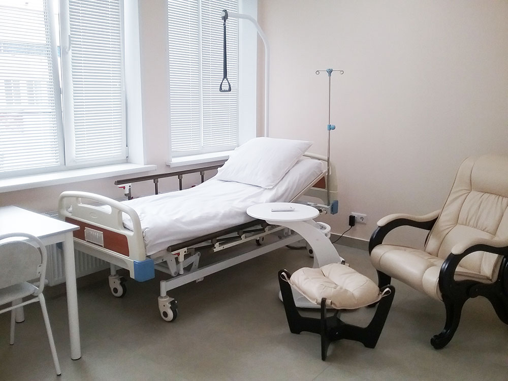 Одноместная комфортабельная палата. Оборудована всем необходимым для удобства пациента! Для Вас – удобная функциональная кровать с противопролежневым матрасом, который подходит для людей с любыми проблемами со здоровьем, система экстренного вызова медицинского персонала, наличие приборов многочасового мониторинга артериального давления и сердечной деятельности.